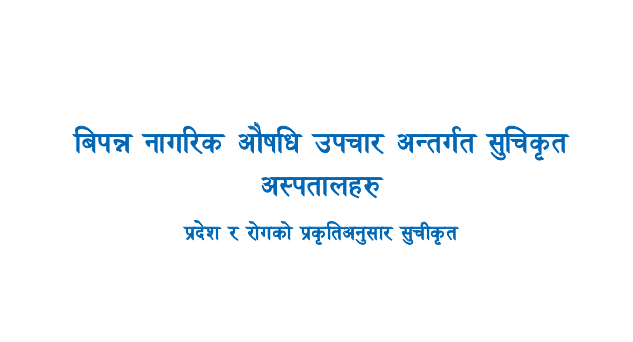 Medical Treatment of Deprived Citizens (Bipanna Nagarik Kosh), Ministry of Health : Bipanna Nagarik Kosh was started after the Janandolan of 2062 BS. With the country slowly recovering from the decade long…